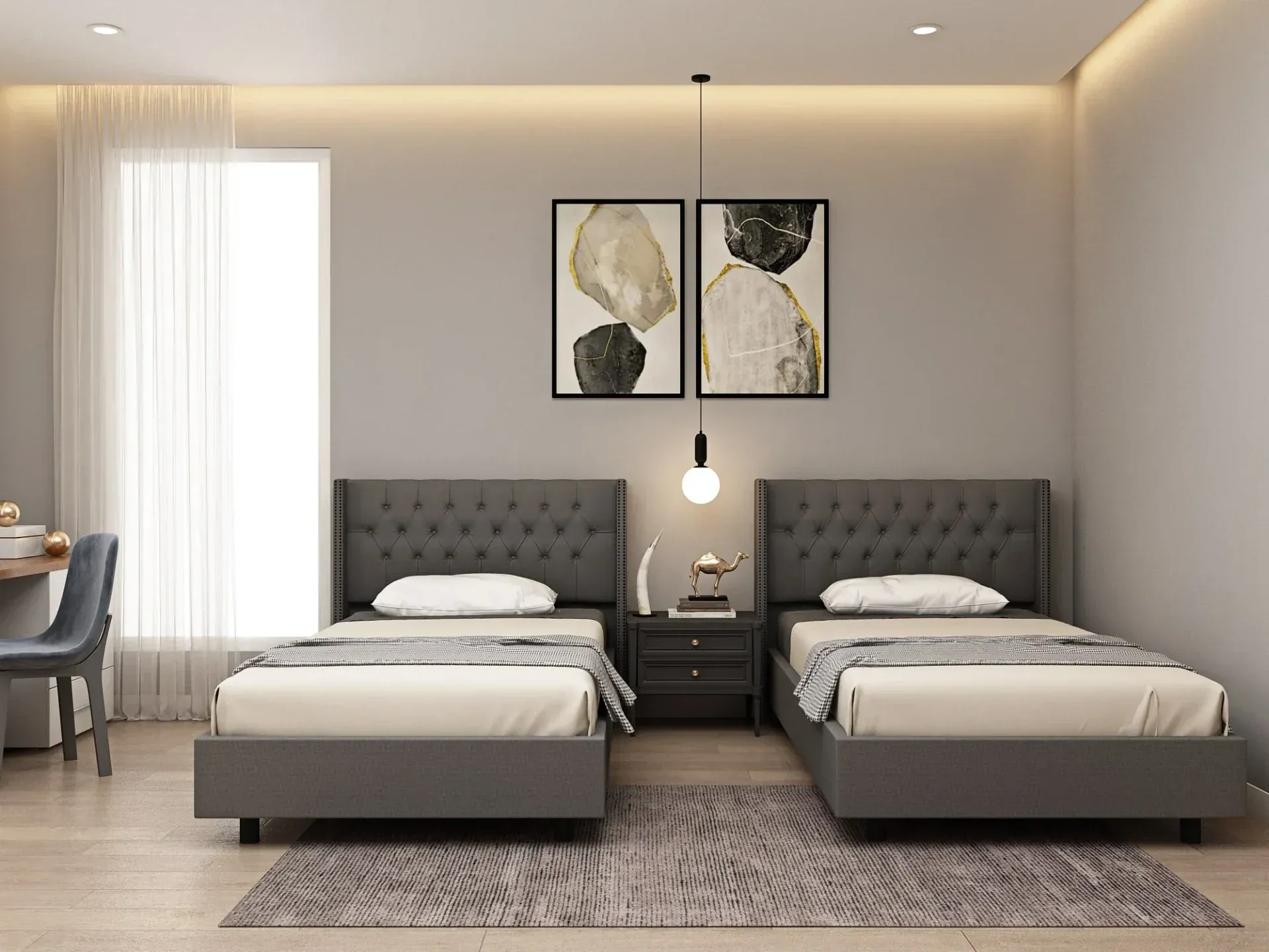 Phòng dưới 10m² nên chọn giường 80×160cm, chừa lối đi tối thiểu 60cm mỗi bên. Phòng 12-15m² thoải mái dùng giường 90×190cm, còn lại không gian cho bàn học và tủ quần áo. Công thức đơn giản: diện tích giường không vượt quá 25% tổng diện tích phòng.