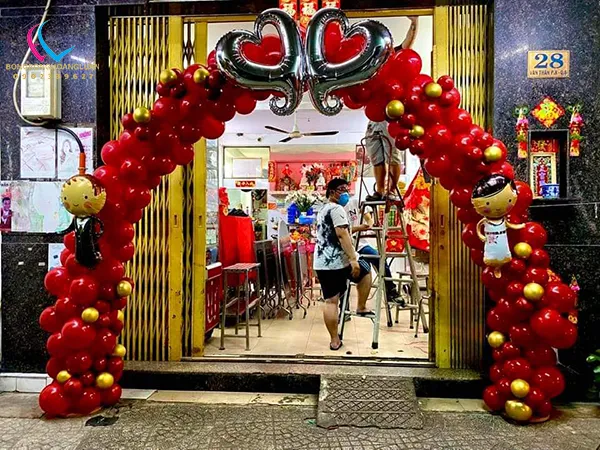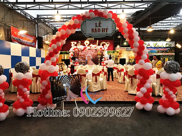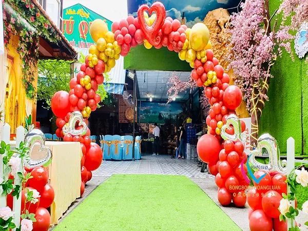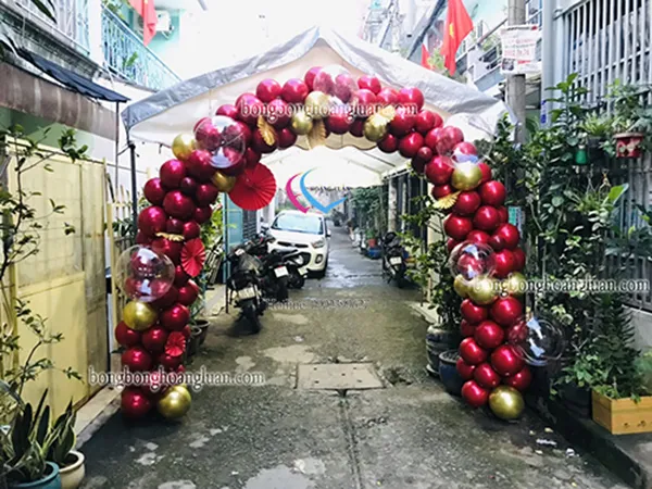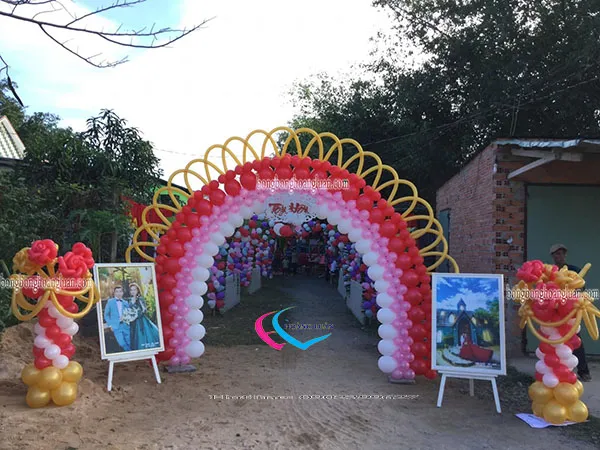 Cổng vòm thường cao 2.5-3m, rộng 3-4m, sử dụng 200-300 quả bong bóng các size từ 5 inch đến 36 inch.